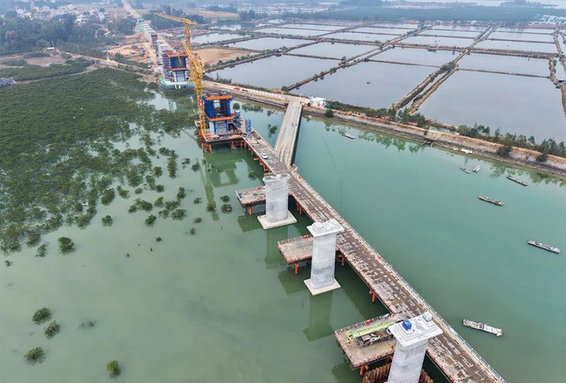 2026年1月26日,由广西交通投资集团控股投资建设的合浦至湛江高铁(以下简称“合湛高铁”)铁山港跨海特大桥施工现场机械轰鸣,混凝土缓缓注入大桥连续梁0号块模板中,标志着合湛高铁全线首个连续梁开始浇筑,桥梁工程进入上部主体结构施工阶段,项目总体建设取得新突破。