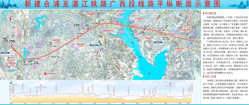 合湛高铁正线全长约139公里,设计时速350公里,是我国“八纵八横”高速铁路网中的包(银)海通道和沿海通道的重要组成部分,定位为国家重要的区际性客运专线铁路,也是广西东向高速新通道和串联北部湾、珠三角、长三角的沿海高速新通道的重要组成部分。项目建成通车后,对扩充广东、广西沿海铁路运输能力,优化完善区域铁路网布局,方便沿线群众出行,推动北部湾城市群建设、促进沿线经济社会高质量发展,具有十分重要的意义。