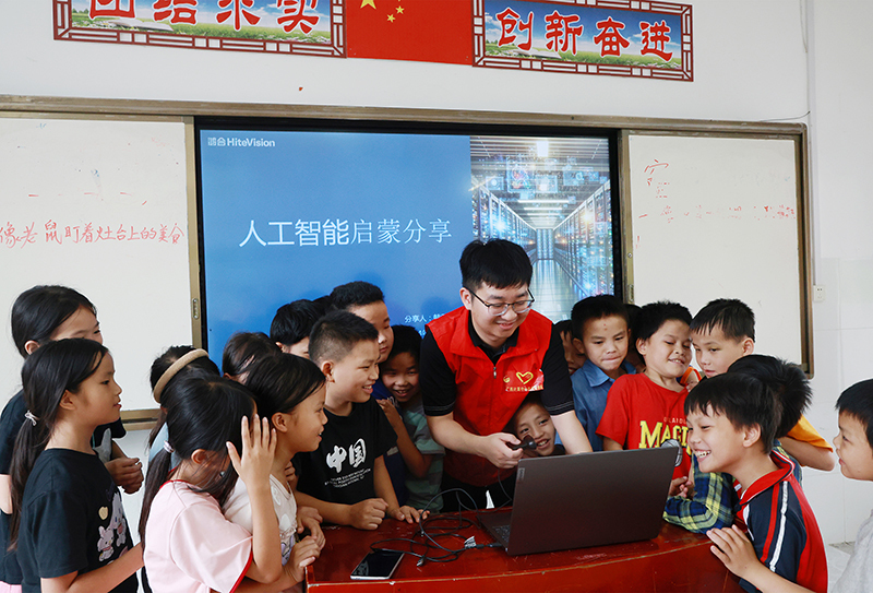 集团定期到百色、河池等民族地区开设无人机巡检科普、机器狗互动展示、AI与教育场景交互等生动有趣的科技“第二课堂”,普及人工智能等前沿科技知识,不断提升民族地区群众计算机操作技能和网络安全意识,惠及群众2000余人。