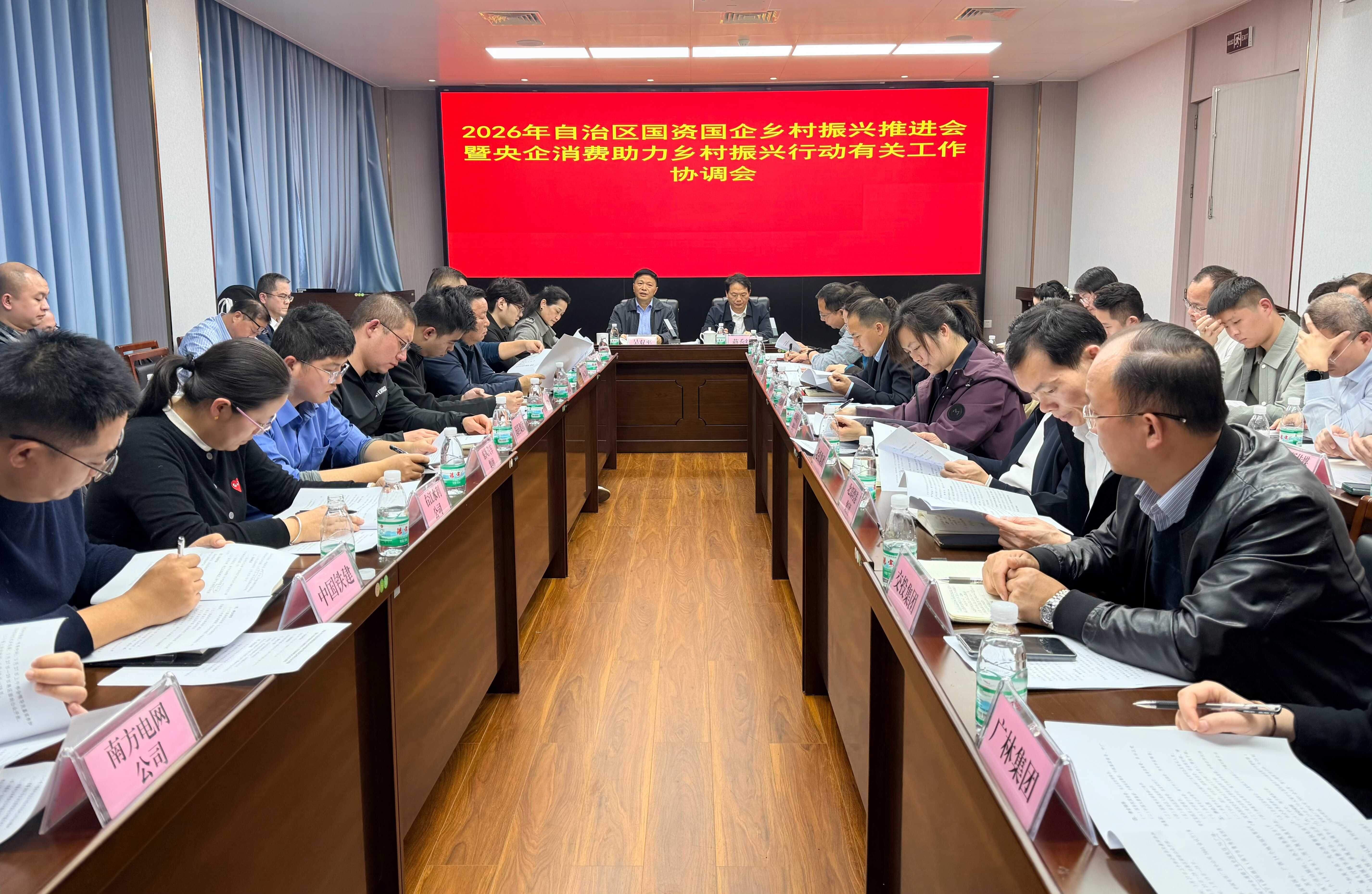 会议专题学习贯彻中央农村工作会议、自治区农村工作会议精神,全面对标对表中央及自治区2026年乡村振兴工作各项决策部署和工作要求,深刻领会做好新时代新征程乡村振兴工作的重大意义、目标任务和实践要求,切实把思想和行动统一到中央及自治区工作部署上来,进一步强化国资国企助力乡村全面振兴的政治自觉、思想自觉和行动自觉。